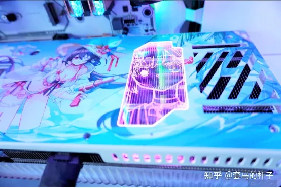 当然,正经人谁看正面,背面的泳装樱瞳不香吗?这次的RTX4080樱瞳水着sugar的背板是真的好看,碧蓝的天空,澄净清凉的海水还有翠绿的椰林,穿着轻纱泳装的少女在向你眨眼,海风习习飘来阵阵清香(注意显卡里是真有芳香模块,盈通的神奇设计),一切都是夏天的味道。有一说一,背板这块颜值确实是很顶,PCB也是纯白色的,这点真的好评。我看到有老哥给自己的显卡刷了个樱瞳水着的背板CG,真的是乐了,但是不建议大家这样做啊,万一出问题影响到保修就不值得了。