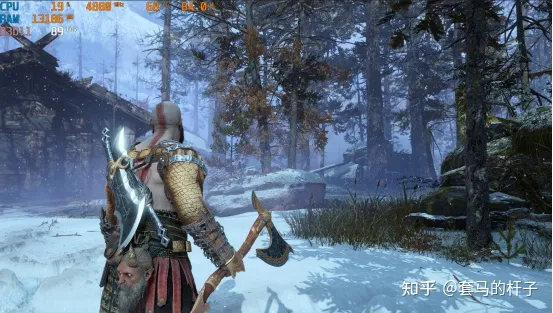 《战神4》奎爷穿上这身装备是真的帅,大斧子一挥简直炸裂,4K最高画质下RTX4080能有100多帧,部分精细的大场景也有80多帧,可以说非常完美了,这画质和帧数玩着是真爽!