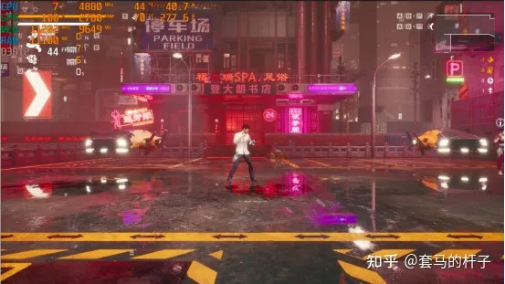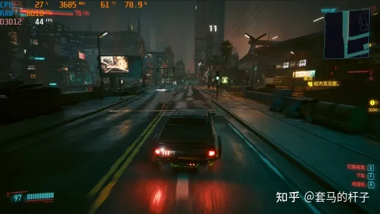 终于到我最期待的游戏测试部分了,基本上都是4K分辨率预设最高画质,看一下在几款热门3A中的表现。首先就是考验显卡性能上限的《赛博朋克2077》,只要能搞定这个游戏,其他游戏基本上都没什么问题。可以看到,在4K分辨率,不开光追不开启DLSS基本上是能保持在60帧左右,但也有部分场景会掉到三四十帧,看来RTX4080想在4K超级画质下玩赛博朋克还是有一点压力,但是通过稍微降一点画质或者开启DLSS基本就能保证最流畅的帧数。