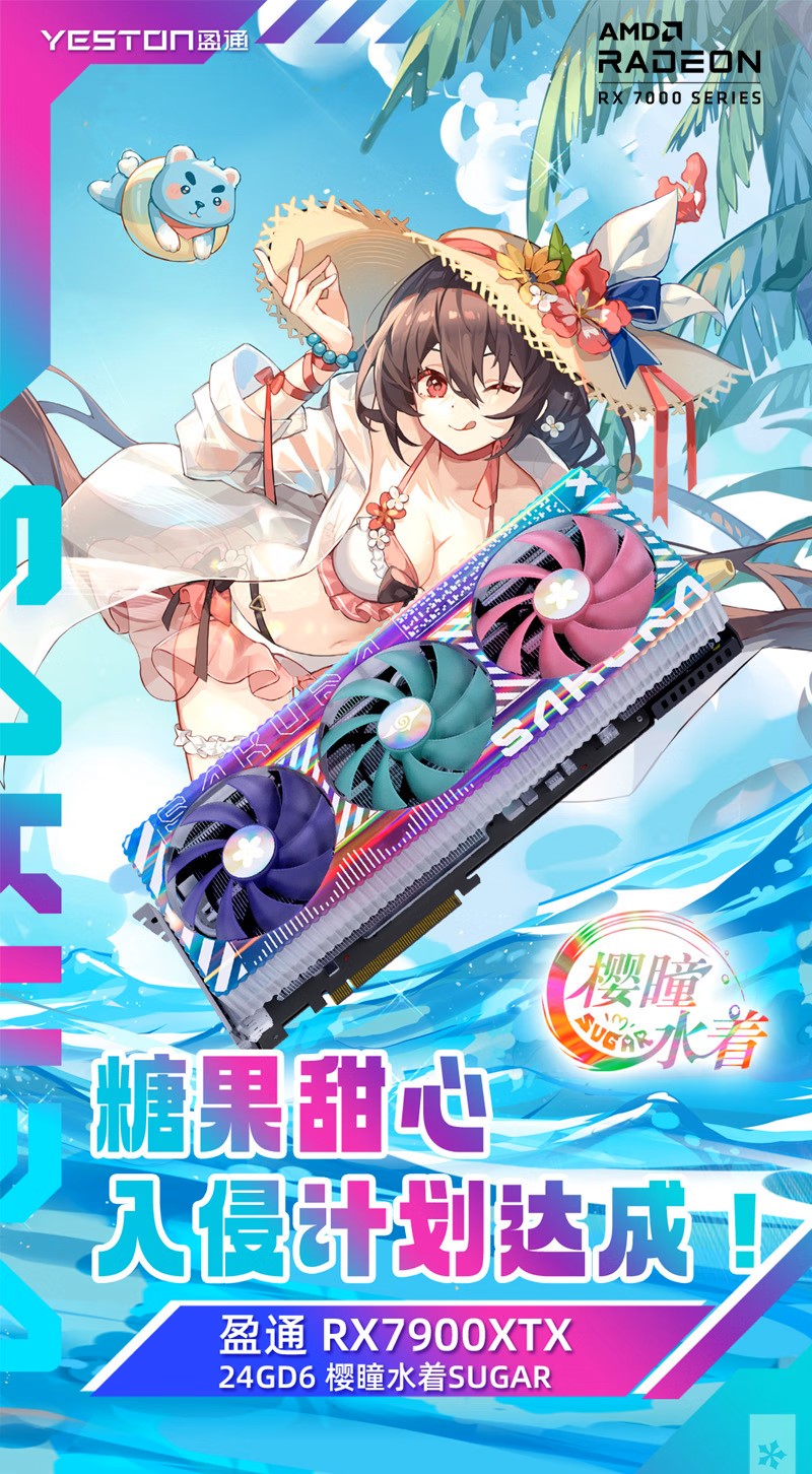 在国内不久前,盈通就上架了樱瞳水着SUGAR系列的Radeon RX 7900 XTX和Radeon RX 7900 XT显卡,目前在京东RX 7900 XTX的价格是8399元,RX 7900 XT则是7399元,