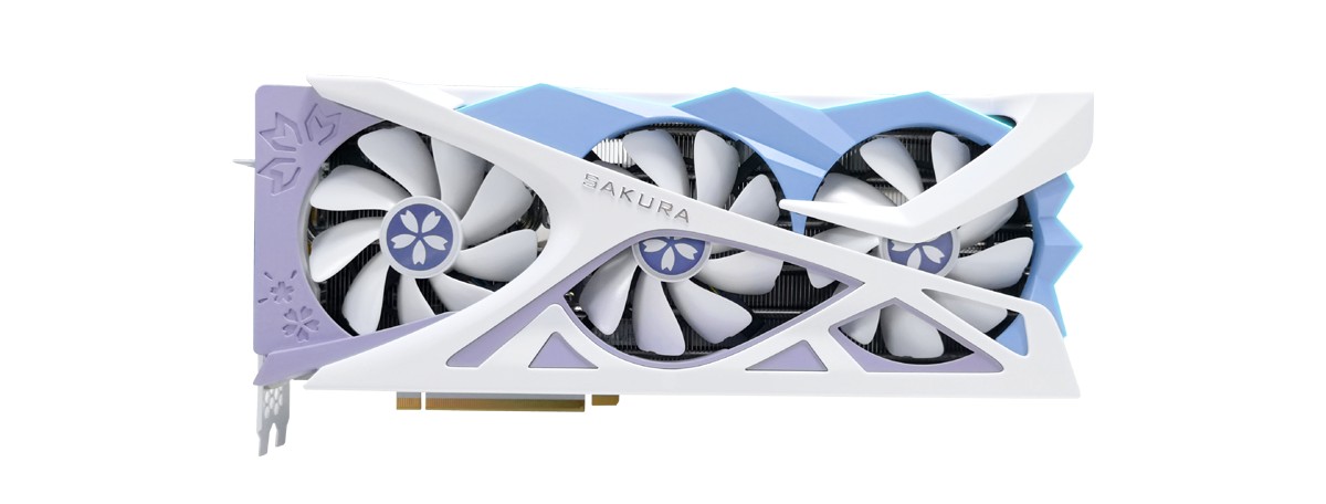 盈通 RX 6750 XT 樱瞳花嫁纪念版 显卡采用了经典款的花嫁外观设计,以白色为主体,并运用了淡紫色和淡蓝色加以点缀,看起来非常华丽优雅,造型上也是独具特色的“花嫁散热设计”,保护罩中间还带有“SAKURA”字样,周围配有RGB灯带,支持与主板R同步GB灯效。显卡配备了金属背板,不但提高了散热效能,还可以防止显卡变形。背板上面有CG原画涂装,设计上颇费心思。此外,显卡的PCB和挡板都采用了白色,更好地贴合了整体设计。还有个细节,每张樱瞳显卡都自带花香模块,且持久留香,二次元形象仿佛跃然于卡上。