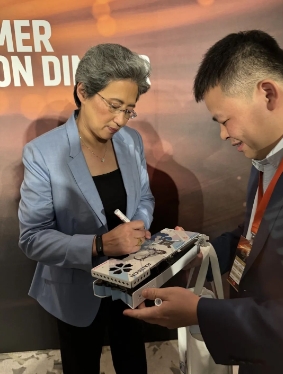 盈嘉讯总经理赵桂鑫先生与AMD CEO Lisa Su博士亲切合影作为AMD的尊荣级合作伙伴,YESTON盈通受邀参加了此次盛会。会后,盈嘉讯实业有限公司(即盈通品牌)总经理赵桂鑫先生与Lisa Su博士亲切合影,共同见证这一历史性时刻。Lisa Su博士在搭载了AMD Radeon GPU的盈通RX 7800 XT樱瞳花嫁显卡产品上签名留念。同时,Lisa Su博士也欣然接受了盈通官方送出的特别定制款盈通RX 7800 XT樱瞳花嫁显卡礼物,这一举动不仅体现了AMD与盈通之间的深厚友谊,也预示着双方未来在高性能计算领域的更多合作与共赢。自2020年樱瞳花嫁IP在搭载AMD Radeon GPU的RX 6800 XT显卡上惊艳亮相以来,其独具匠心的ID设计便彻底打破了玩家对显卡外观的刻板印象。优雅与独特的视觉体验迅速引发了广大玩家的热烈讨论与追捧,市场对其的认可也达到了前所未有的高度。樱瞳花嫁不仅重塑了显卡的审美标准,更引领了硬件行业将二次元IP与产品设计深度结合的新潮流。特别礼物——定制款盈通RX 7800 XT樱瞳花嫁显卡
