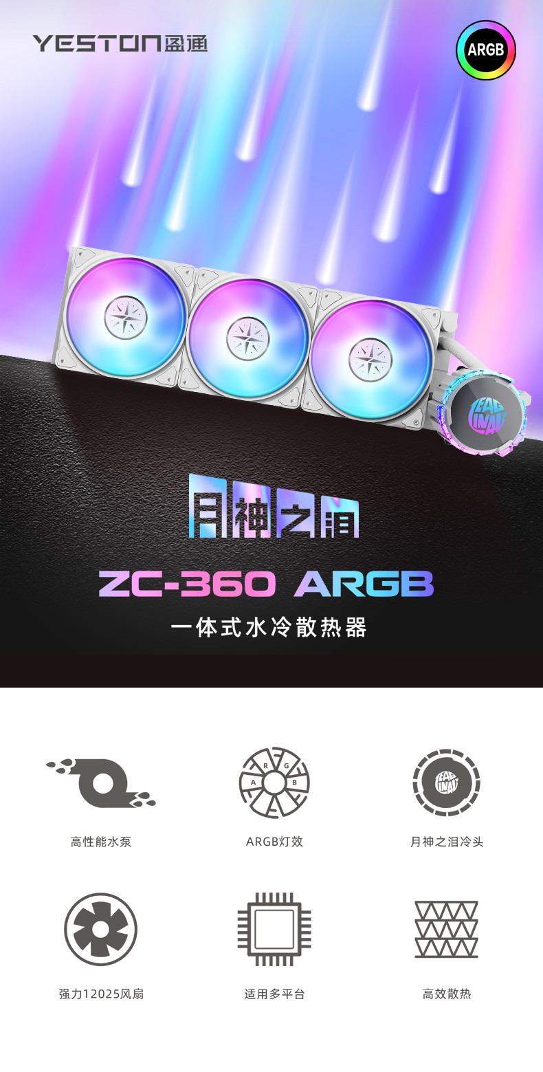 ZC-360 月神之泪 机箱一体式水冷散热器 白