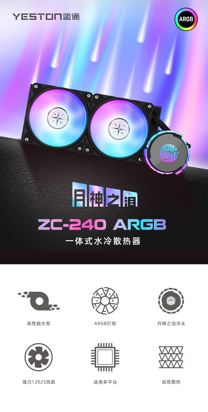 ZC-240 月神之泪 机箱一体式水冷散热器 黑