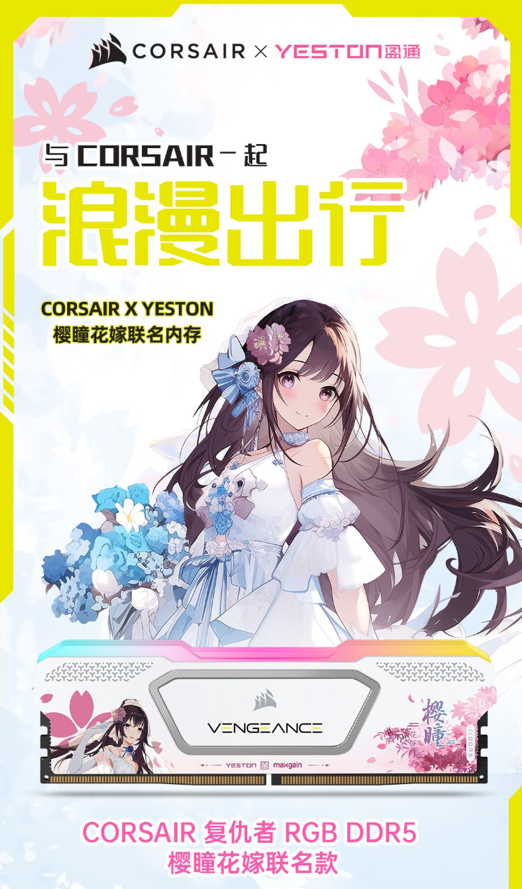 YESTON x 美商海盗船 DDR5台式机内存条 复仇者RGB SL 灯条系列 神光同步 花嫁联名款
