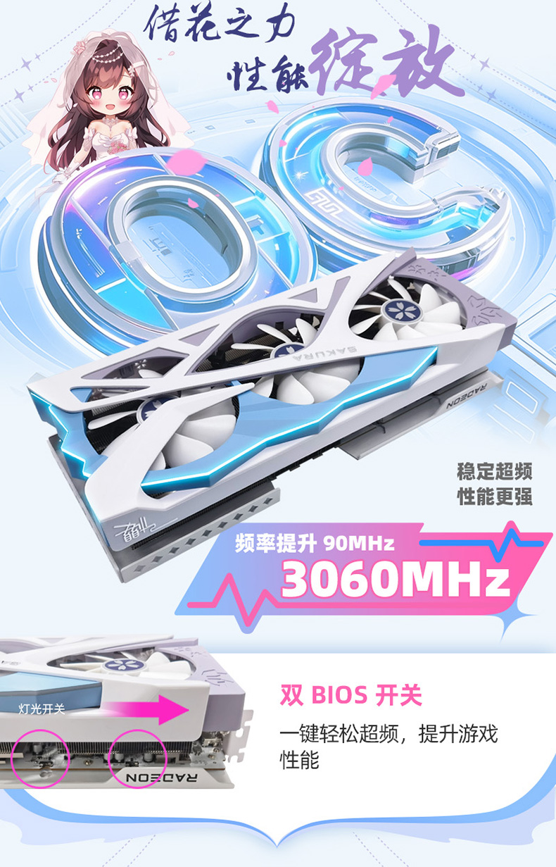 盈通 RX9070XT-16GD6 樱瞳花嫁 OC