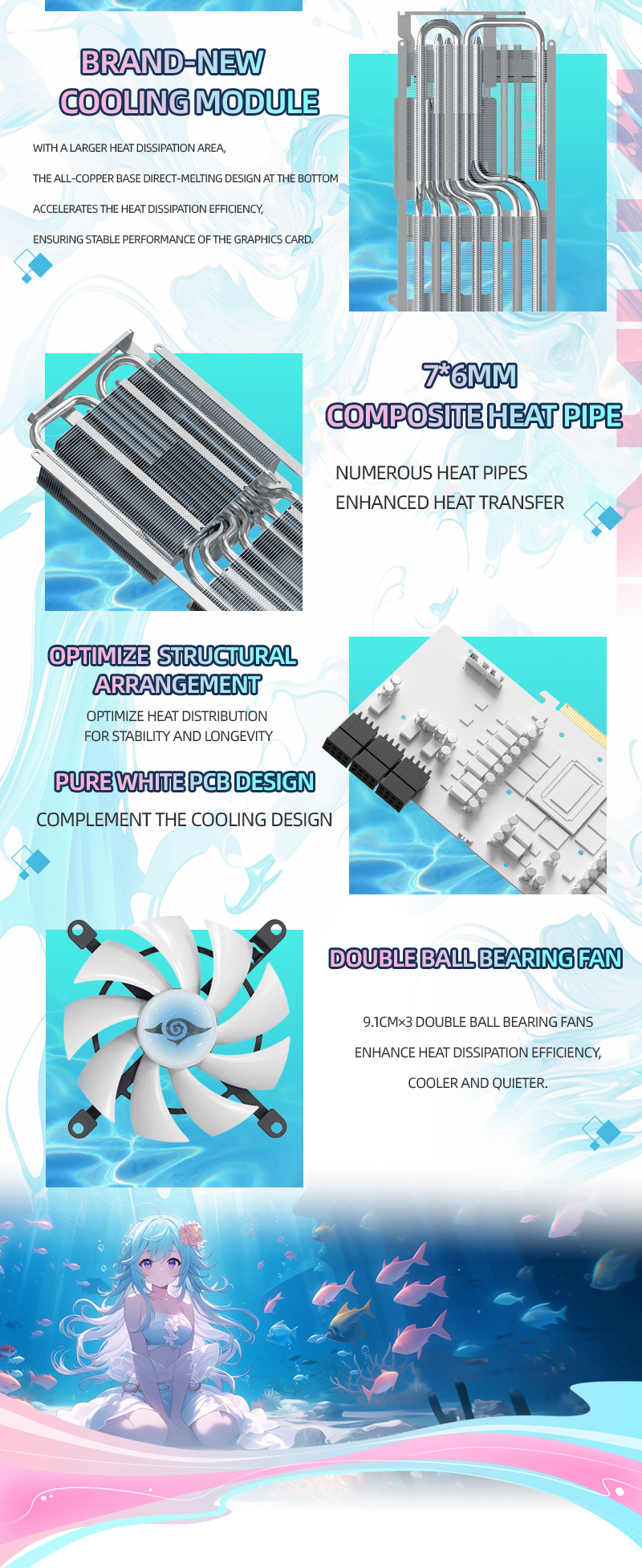 Core code and manufacturing process: Navi48/4nmUnified shaders: 4096Core frequency: STD/2400-2970MHz, VAR/2520-3060MHz (default STD standard frequency)BIOS: Dual bios switch (STD/VAR)Memory frequency: 2518MHzMemory speed: 20GbpsVideo memory capacity and specifications: 16G/256bit/GDDR6Fan features: 6Pin, adjustable speed, display of speed valueOutput interface: DP(2.1) *3 + HDMI(2.1a)Maximum resolution: 7680*4320 (DP & HDMI)External power supply: 8PIN * 3 (recommended power supply above 850W)Graphics card size: 330*138*65mm (excluding bracket)332*138*65mm (including baffle)Weight: 1434g