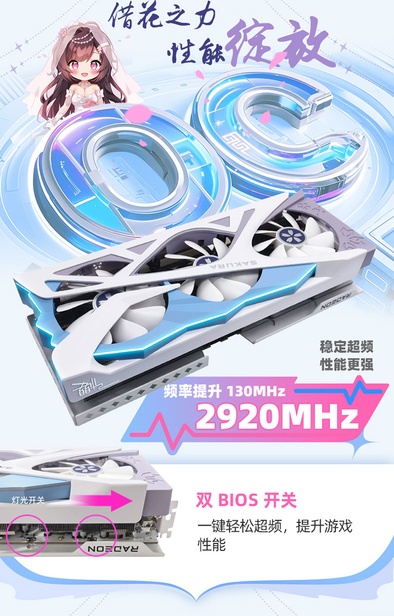 盈通 RX9070GRE-12G D6 樱瞳花嫁 OC